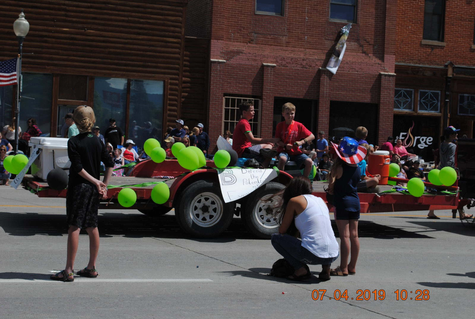 AT THE END OF THE PARADE, THE FREMONT COUNTY BATTALION FIRE TRUCKS GATHER TO HAVE A WATER FIGHT FOR THE KIDS!! . . .NOT FOR ME!